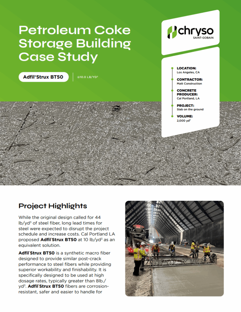 When long steel lead times meant a delay in the project & increased costs, CalPortland proposed using Adfil®Strux BT50 synthetic concrete macro fibers to fill-in in a pinch.