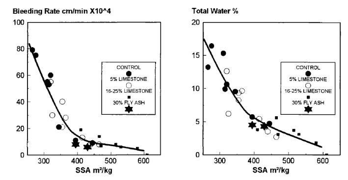 The influence of specific surface area on bleeding rate (Moir and Kelham, 1997)